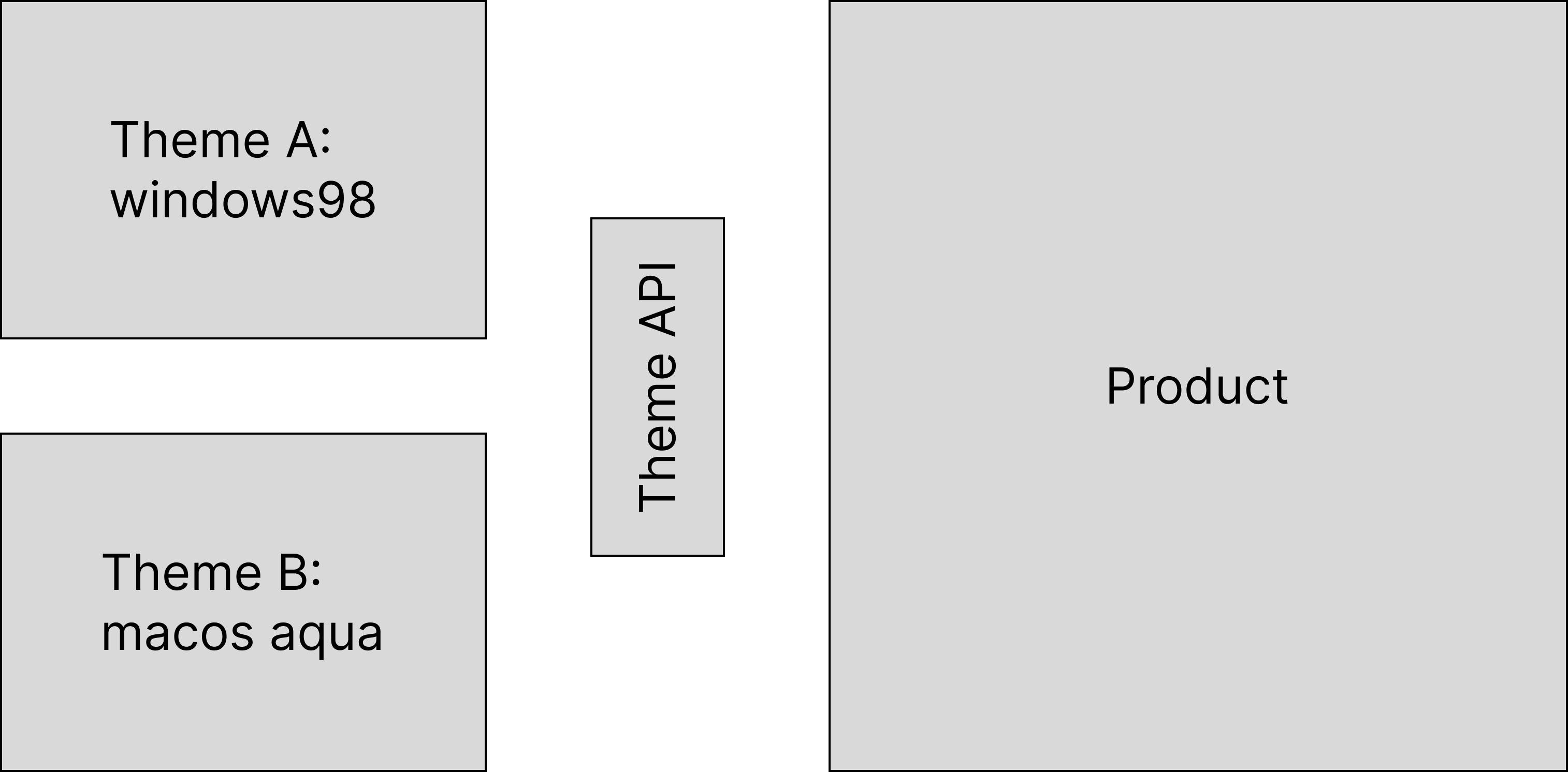 - A theme API is a contract between a product (token consumers) and a theme (token designers)